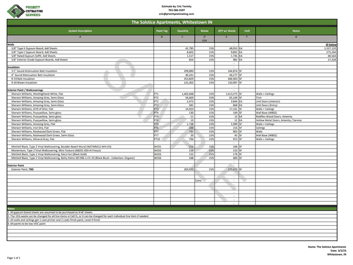 Scope: Drywall, Insulation, Paint, Wallcoverings